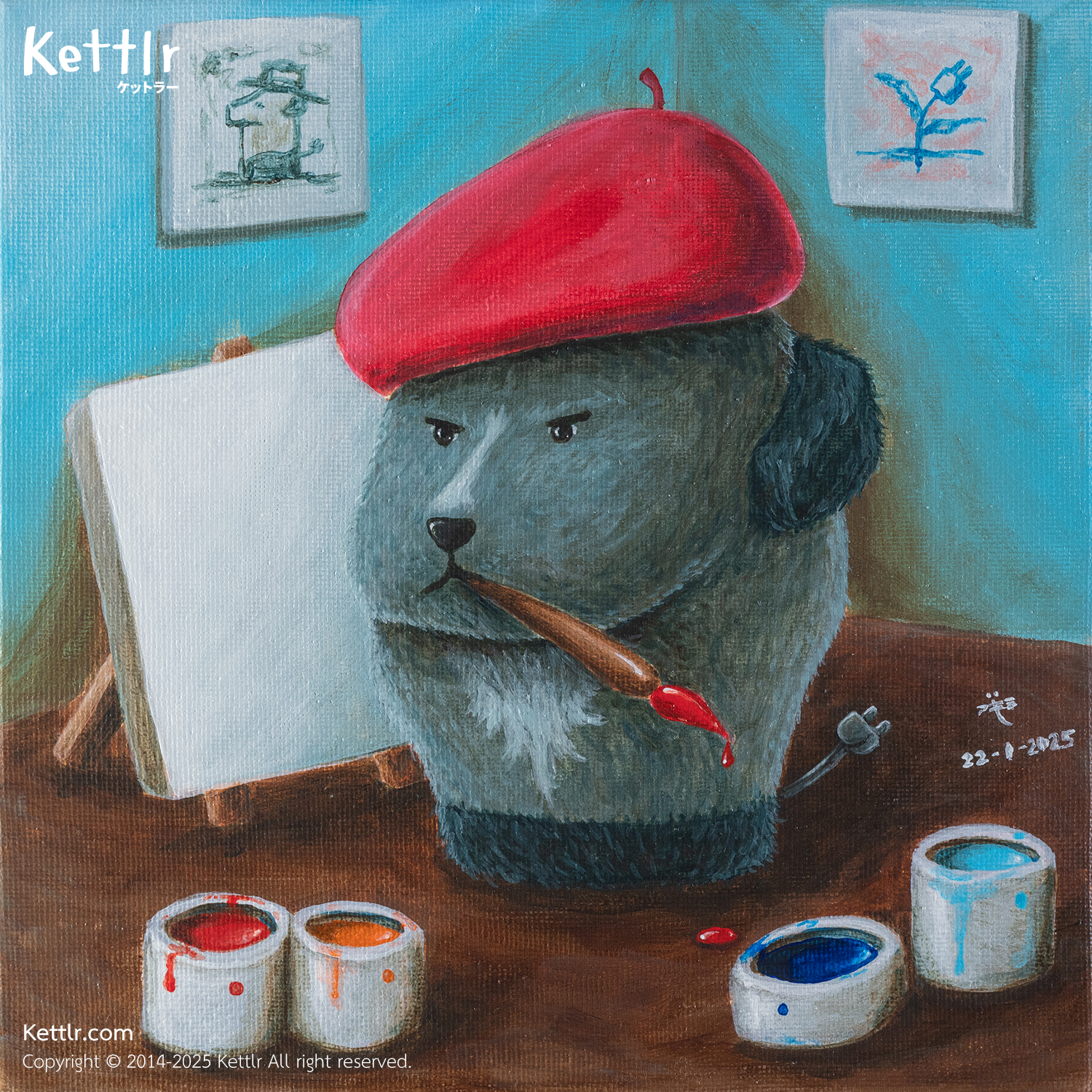 The Kettlr American Pit Bull Terrier is a painter with great ideas, just a little short-tempered on days when he doesn’t know what to paint. And it’s moments like these that many collectors say become the beginning of the most memorable works.
