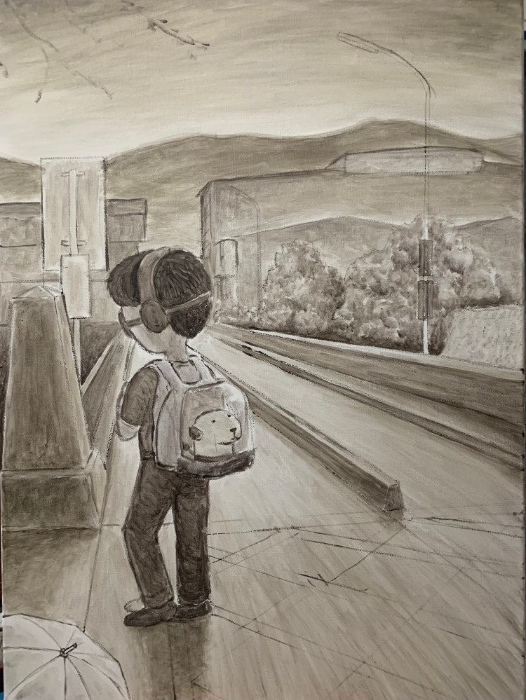 A quiet scene unfolding in rain — a space of distance, reflection, and suspended time. Currently in development within the studio.
